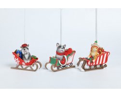Подвес "Зверята в санях", 10,3*5,9*9см. 3в.