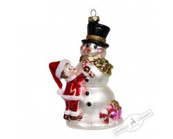 Стеклянная игрушка "Мальчик со снеговиком", 7,5*7,5*13,5см. (в под.упак)