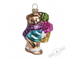 Стеклянная игрушка "Мишутка с подарками", 5,5*4,5*10,5см.
