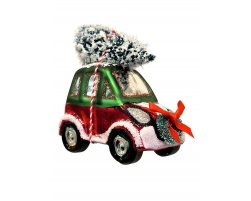 Стеклянная игрушка "Машинка с елочкой", 9*6*11см.