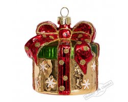 Стеклянная игрушка "Подарок-сюрприз", 5,5*5,5*7см.