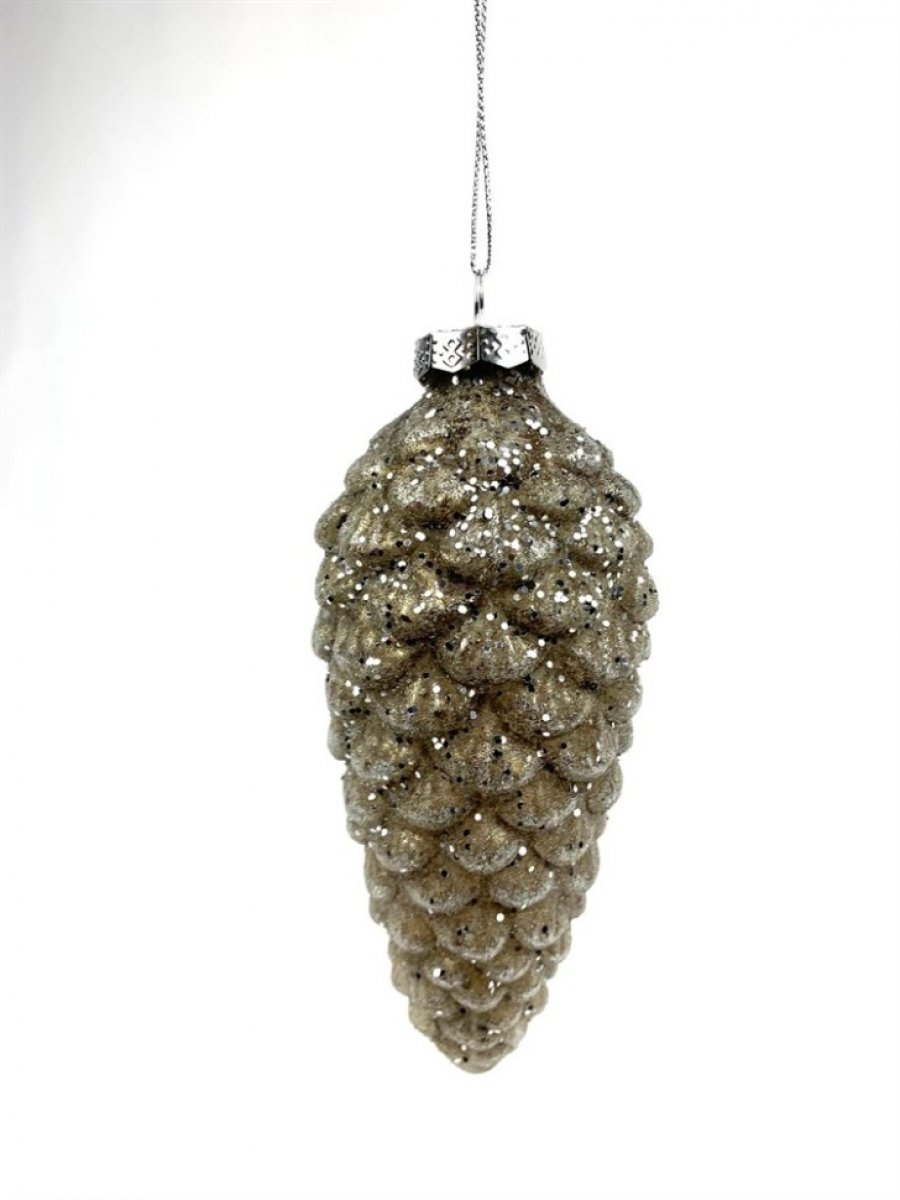 Стелянное украшение "Шишка", Н13см.(зеленый)