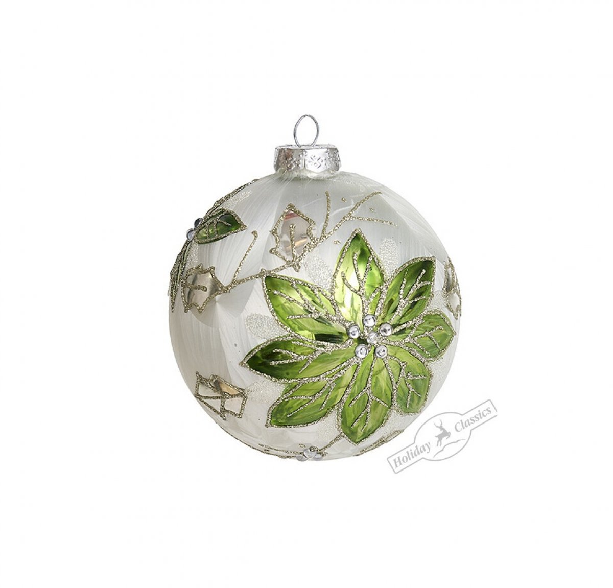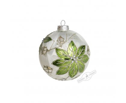 Стекло Шар "Зеленая пуансеттия" шелкография, 10см.