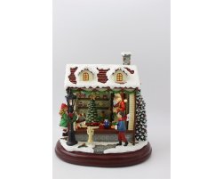 Фонарь "Эльф у елки", 14*14*27см. музыка, свет