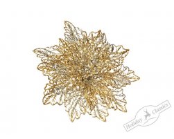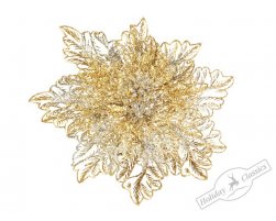 Пуансеттия ажурная золотая на прищепке, д.13см