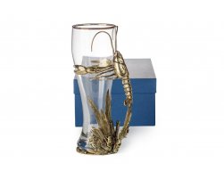 12999 n арт: 90.05.001Лев, как царь зверей, как ему и подобает, в короне, с грозным взглядом. С обеих сторон щиты с двумя мечами. Такую композицию можно увидеть на верхней части кружки. Сам бокал изготовлен из стекла, а вот композиция — из латуни, к тому же вручную.
