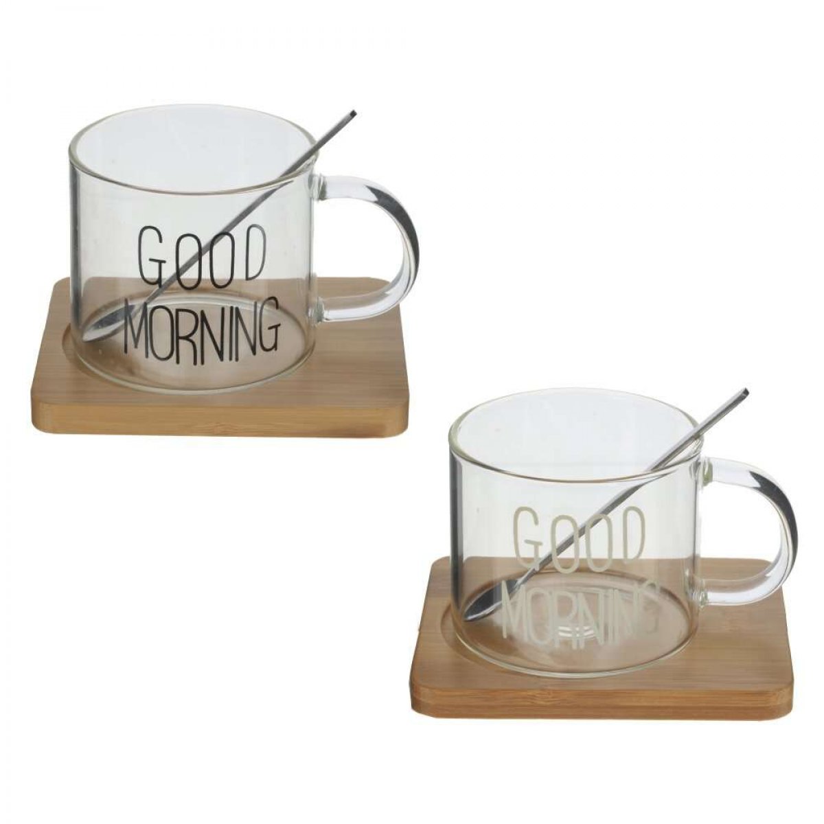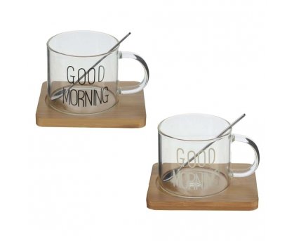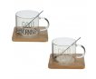 Кружка с ложкой на деревянной подставке, 300мл. 2в.