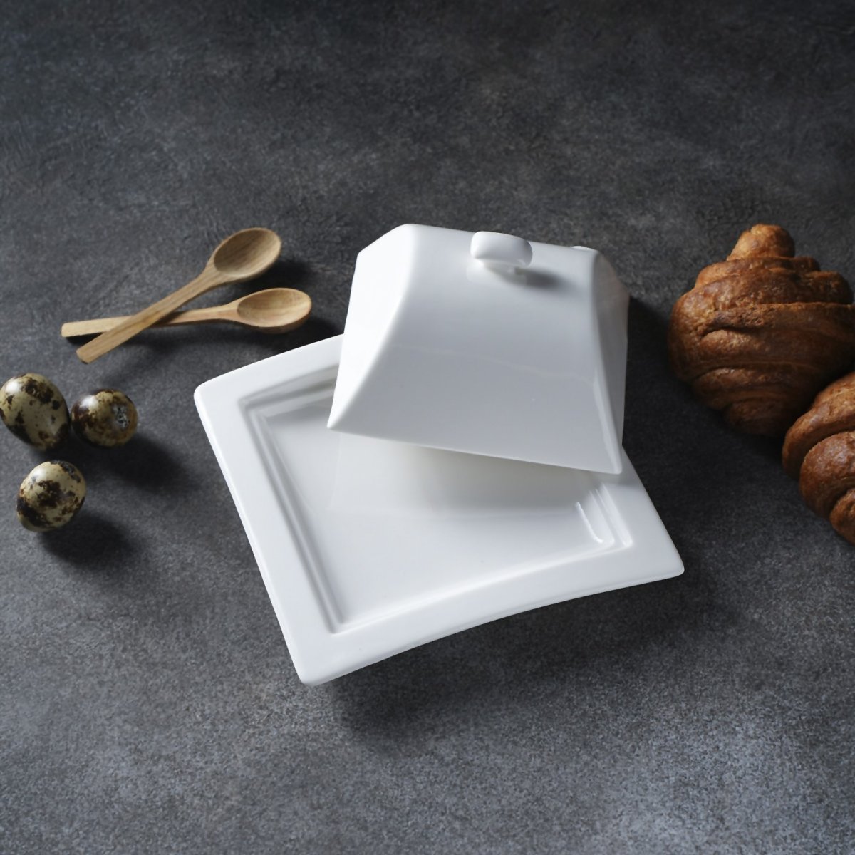 Маслёнка фарфоровая «Бланш», 16×8см.