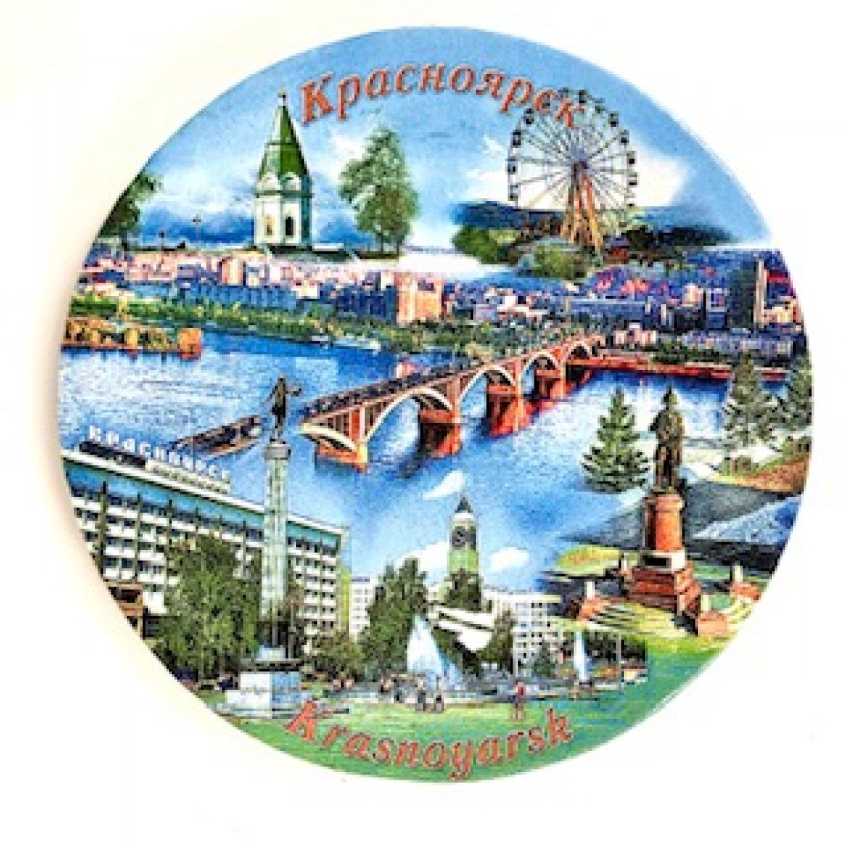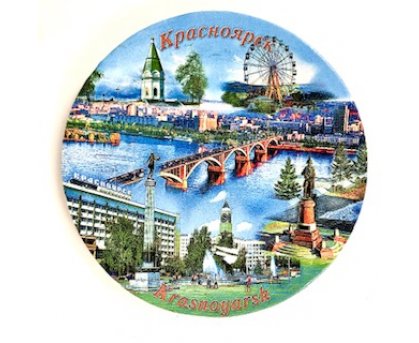 Тарелка "Красноярск. Виды города" (Керамика), д.14см.