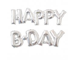 Шар - фигура "Happy B-DAY", 59*90см. серебро