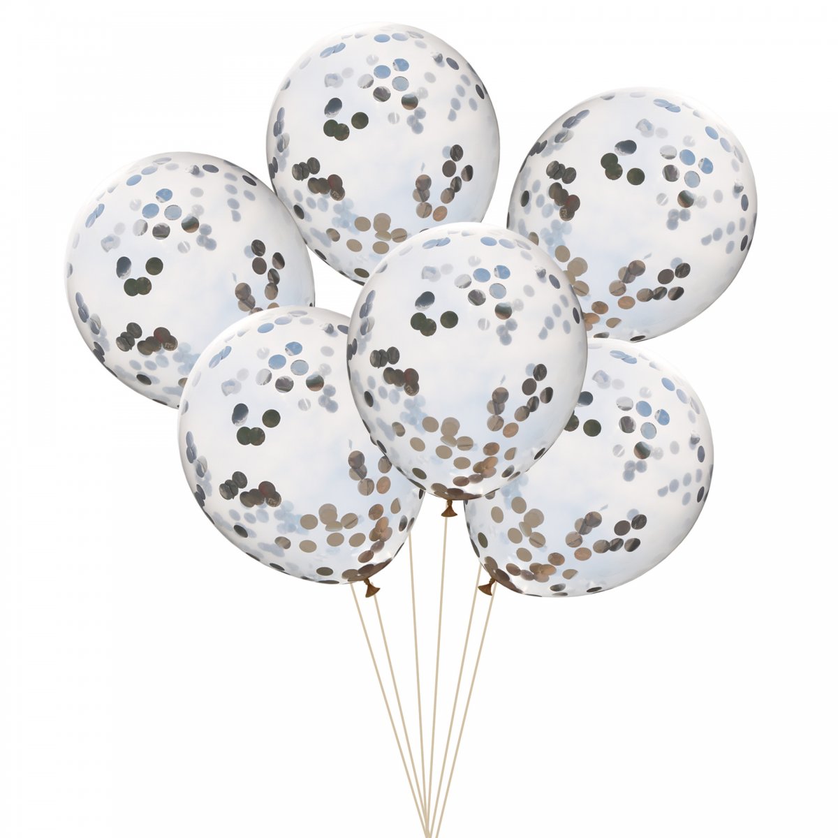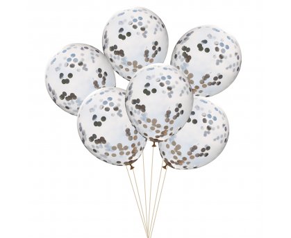 Воздушные высококачественные прозрачные латексные шары 30-35см с конфетти в виде серебряных кругов из полисилка.