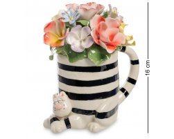 Статуэтка "Полосатый Кот с вазой цветов", 14*12*16см.